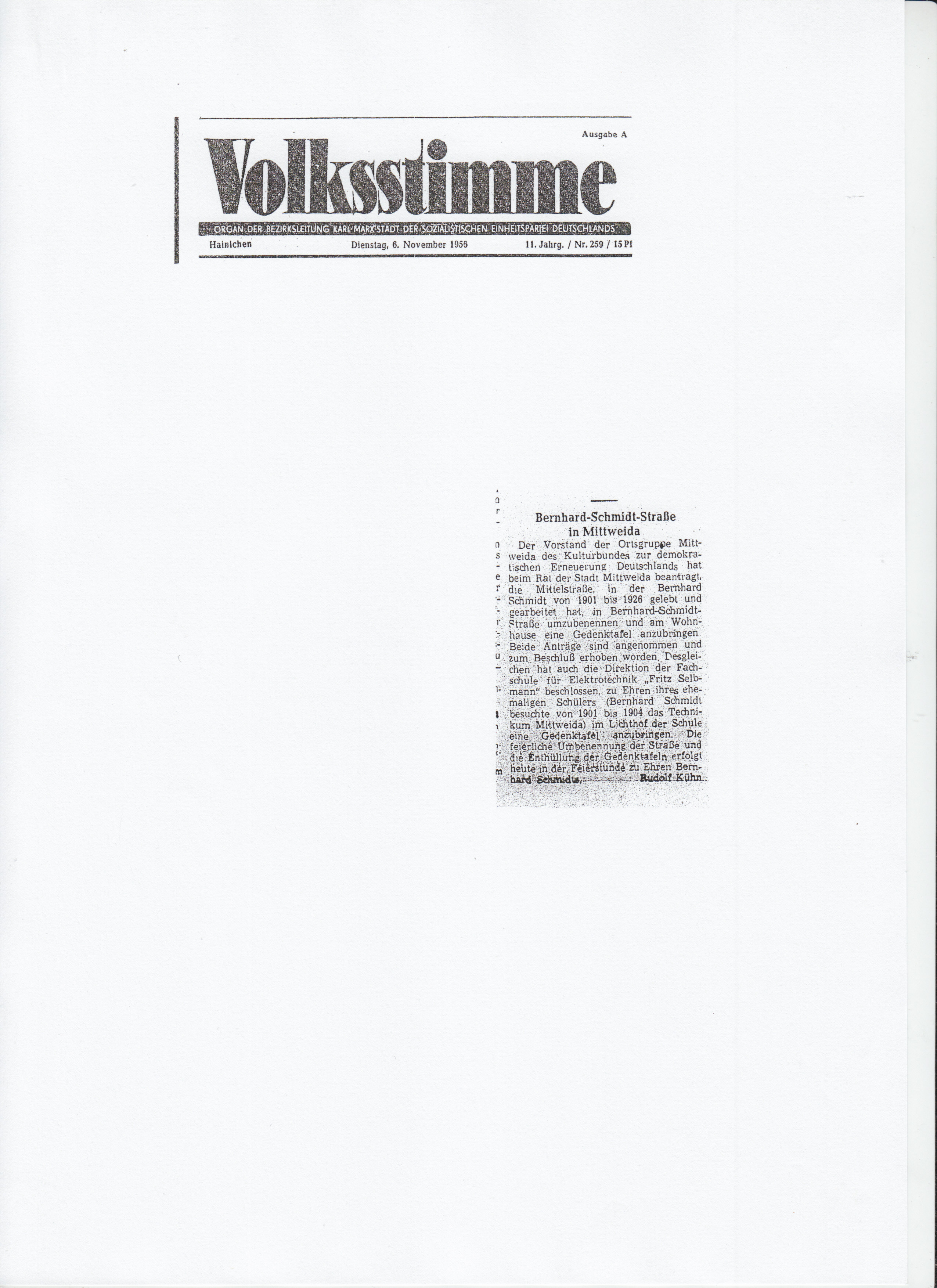 Projektdetails: "Bernhard-Schmidt-Straße in Mittweida", aus Volksstimme Jg. 11, nr. 259