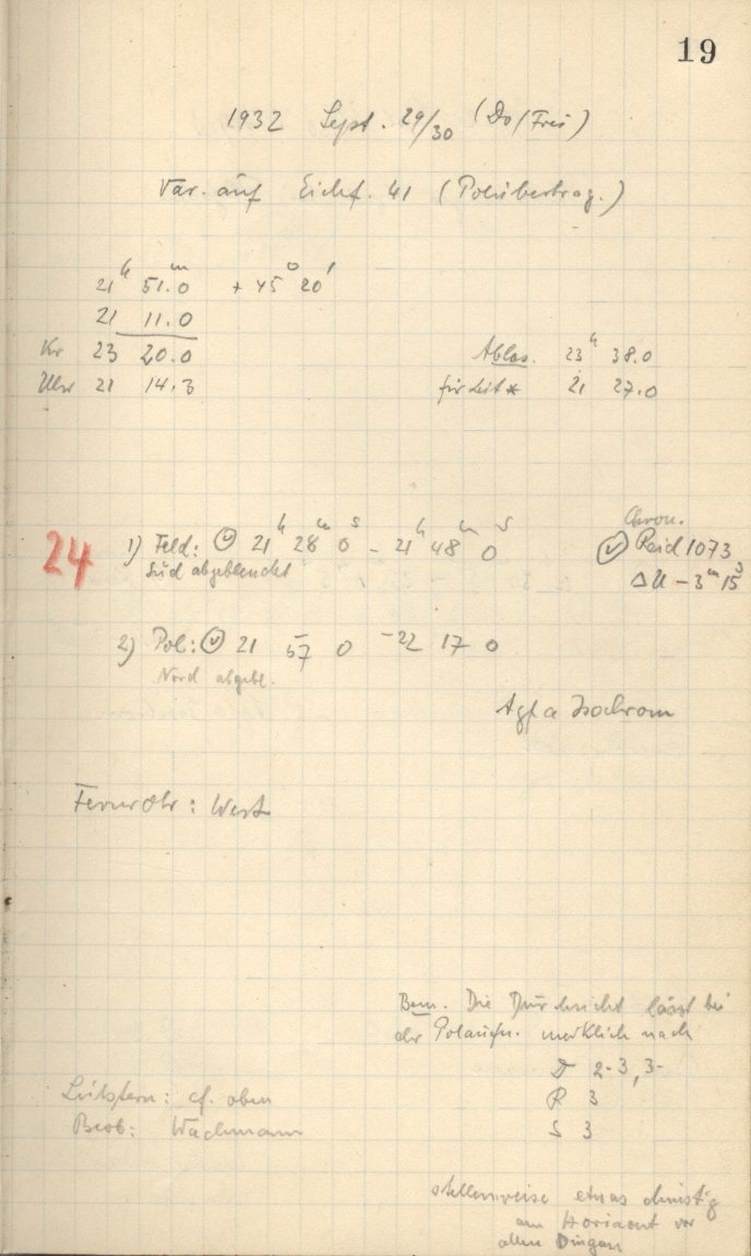 More Observer Notes (Schmidtsches Spiegeltelescope)
