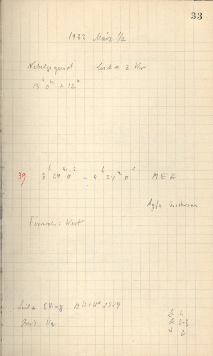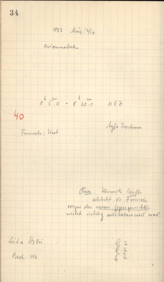 More Observer Notes (Schmidtsches Spiegeltelescope)