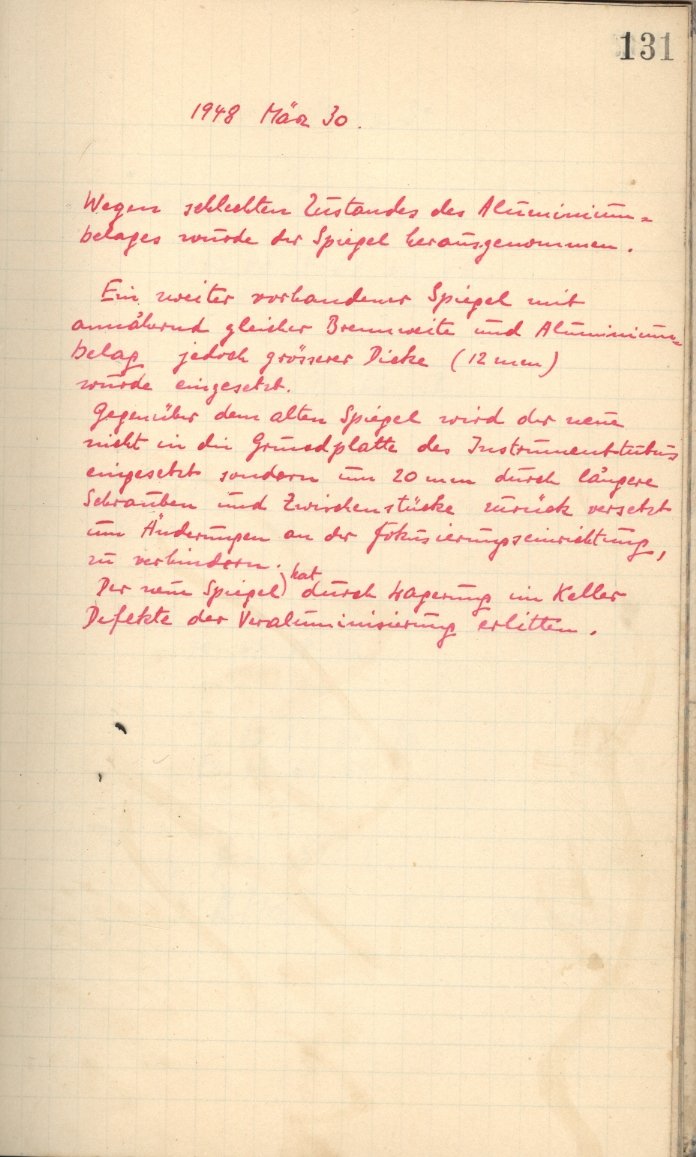 More Observer Notes (Schmidtsches Spiegeltelescope)