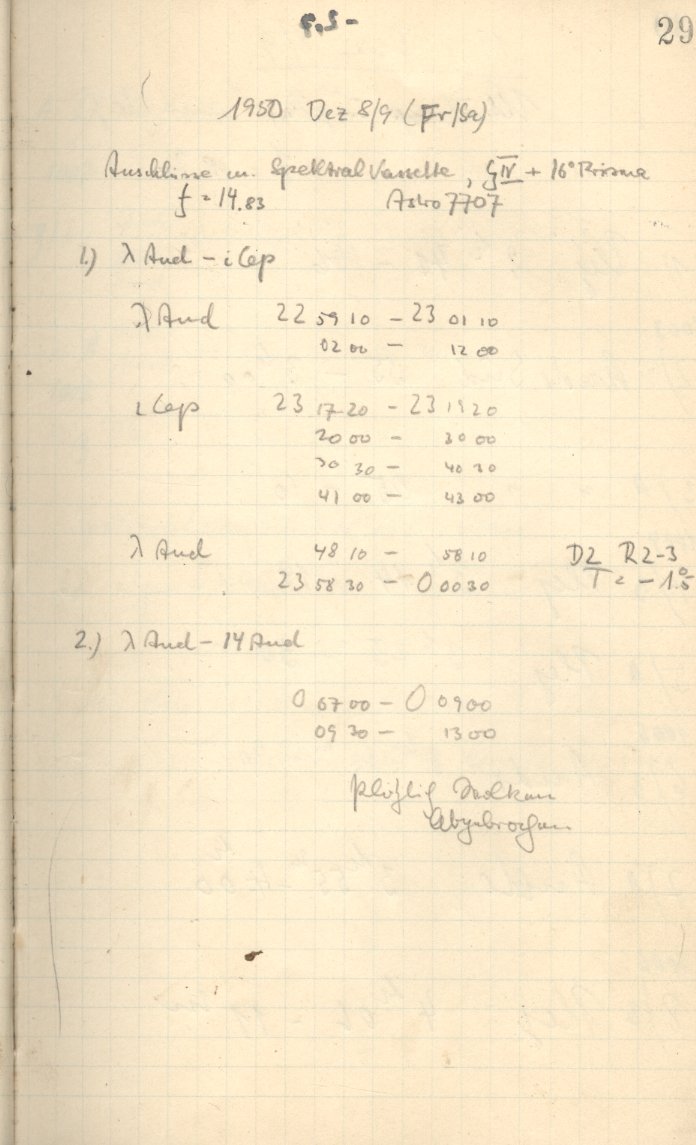 More Observer Notes (Schmidtsches Spiegeltelescope)