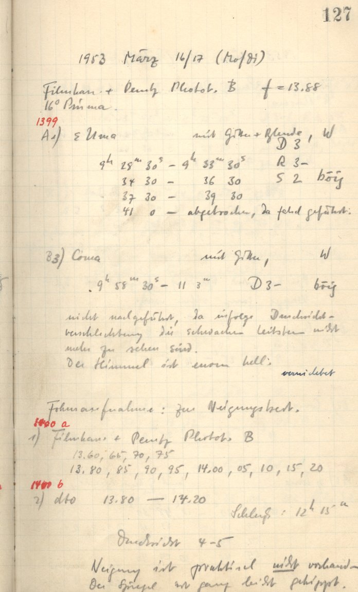 More Observer Notes (Schmidtsches Spiegeltelescope)