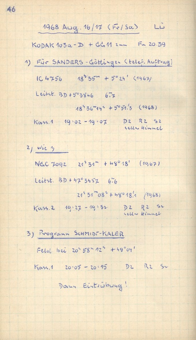 Weitere Beobachtungsbücher (Großer Schmidt-Spiegel)