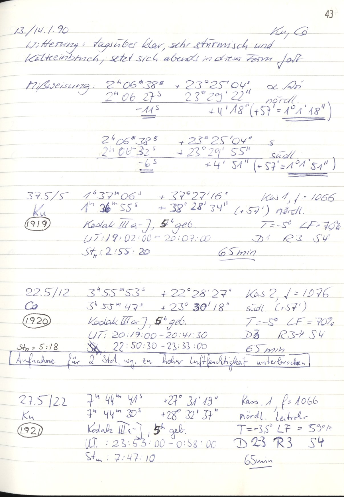 Weitere Beobachtungsbücher (Hamburger Schmidtspiegel)
