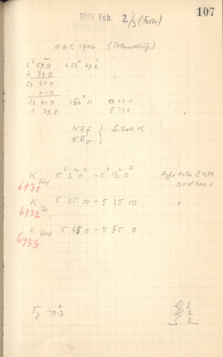 Weitere Beobachtungsbücher (Lippert-Astrograph)