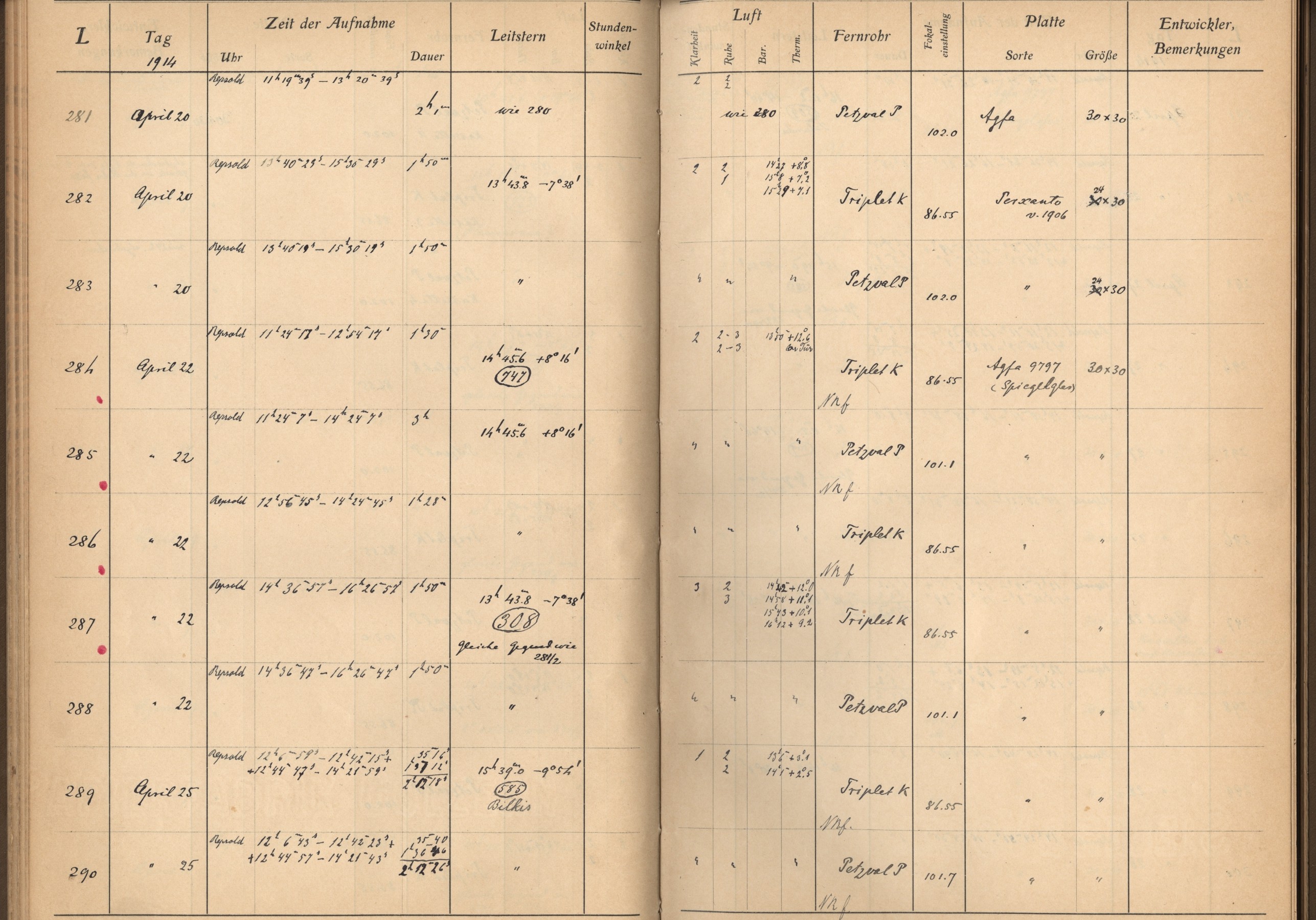 Weitere Beobachtungsbücher (Lippert-Astrograph)