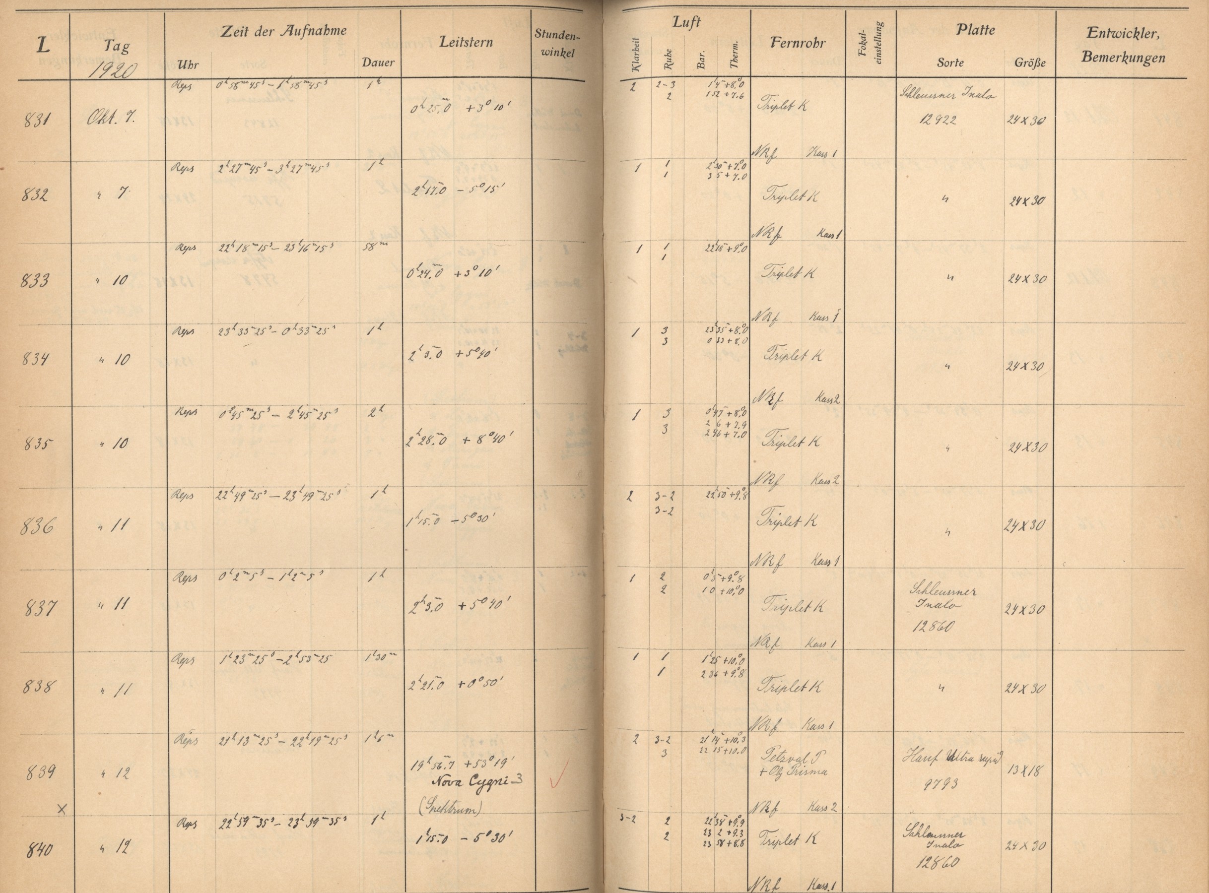 Weitere Beobachtungsbücher (Lippert-Astrograph)