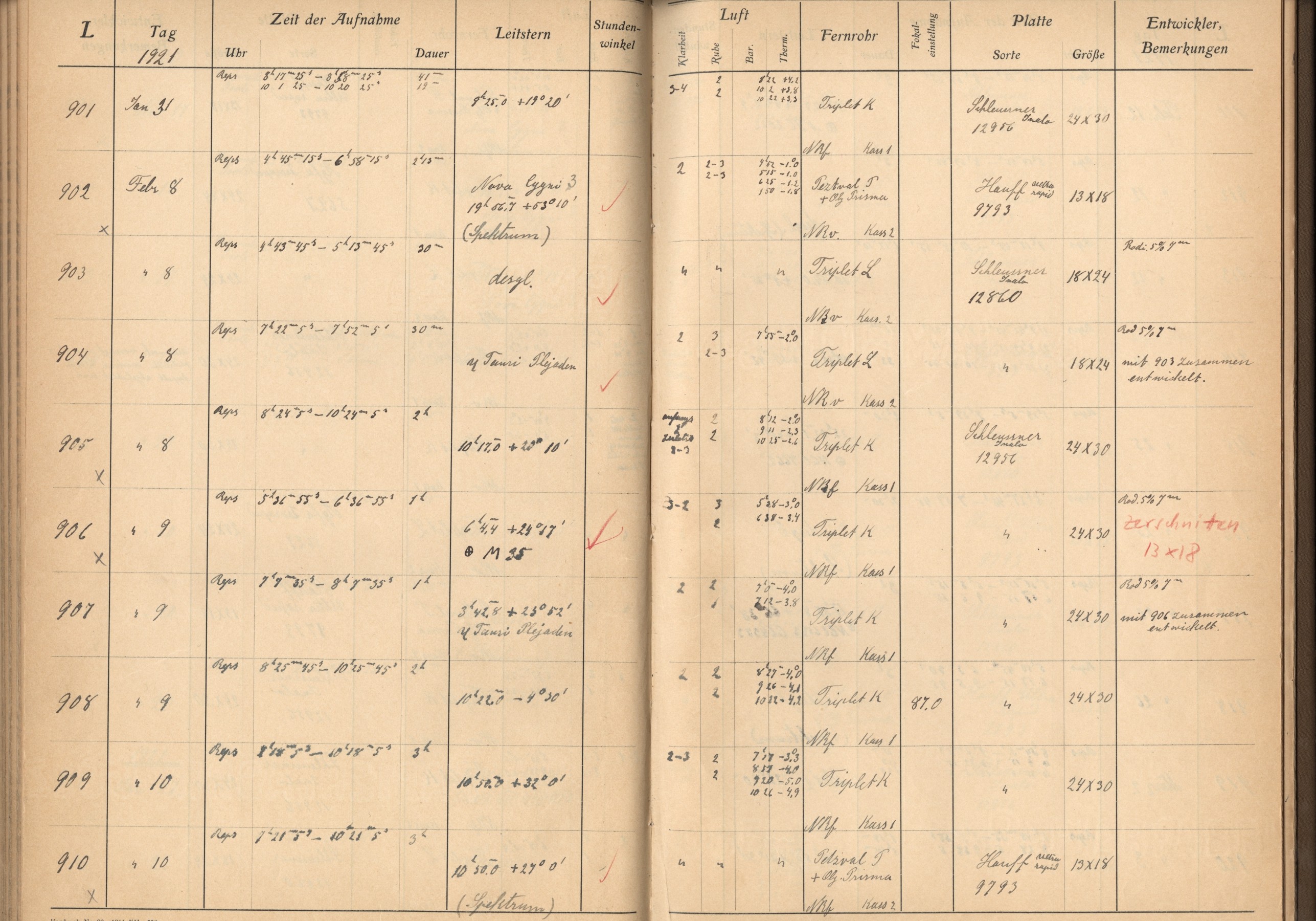 Weitere Beobachtungsbücher (Lippert-Astrograph)