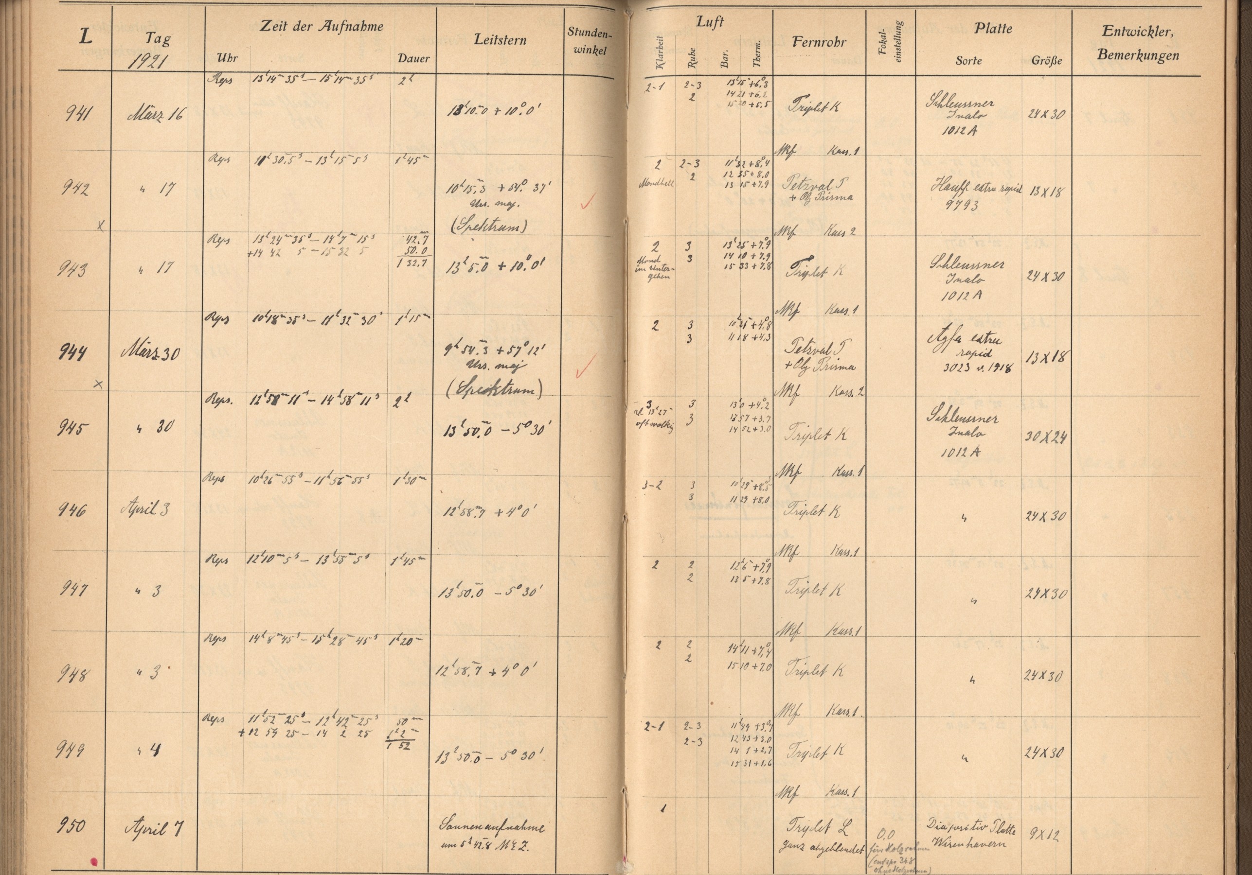 Weitere Beobachtungsbücher (Lippert-Astrograph)