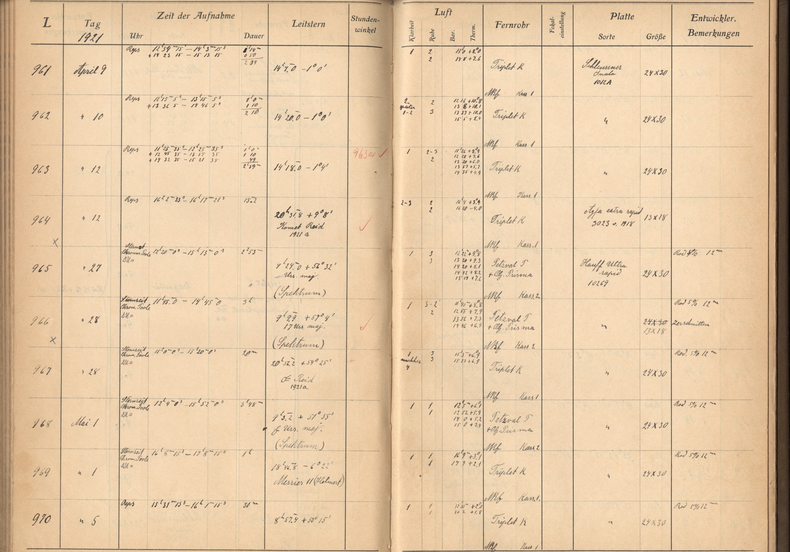 Weitere Beobachtungsbücher (Lippert-Astrograph)