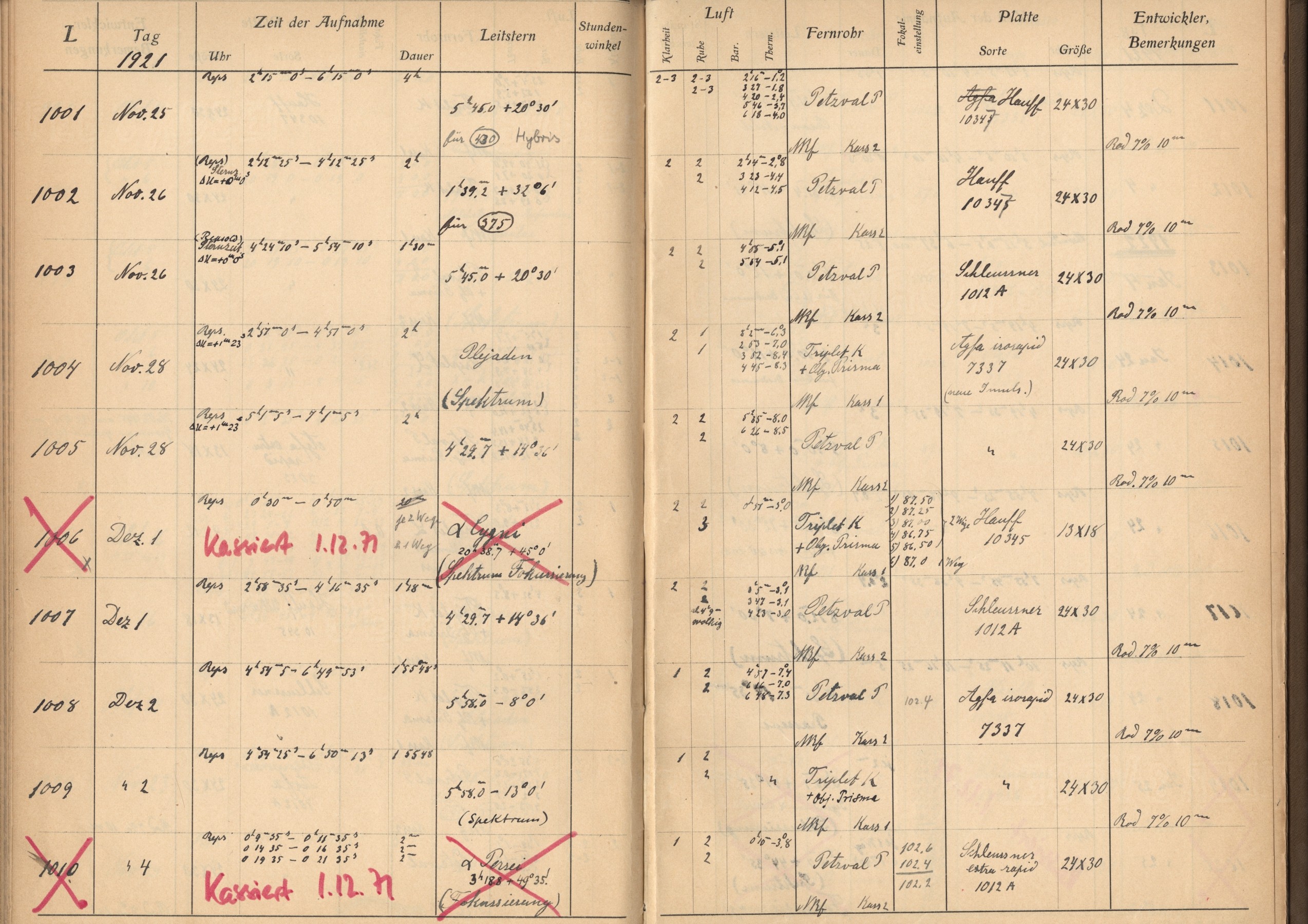 Weitere Beobachtungsbücher (Lippert-Astrograph)