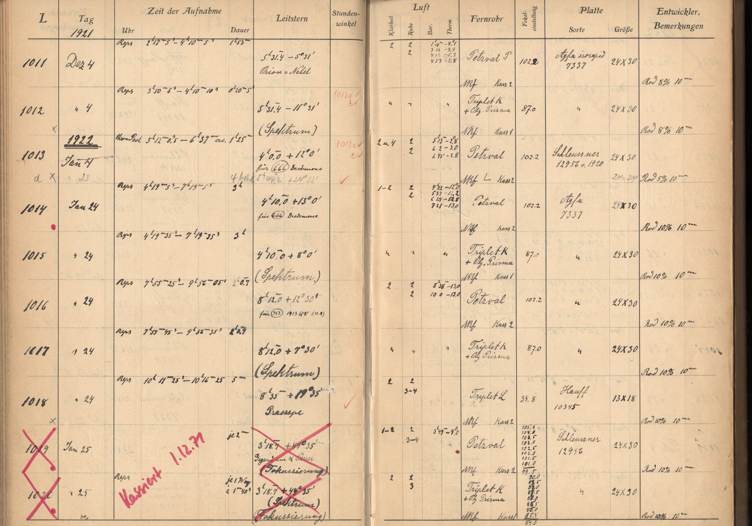 Weitere Beobachtungsbücher (Lippert-Astrograph)