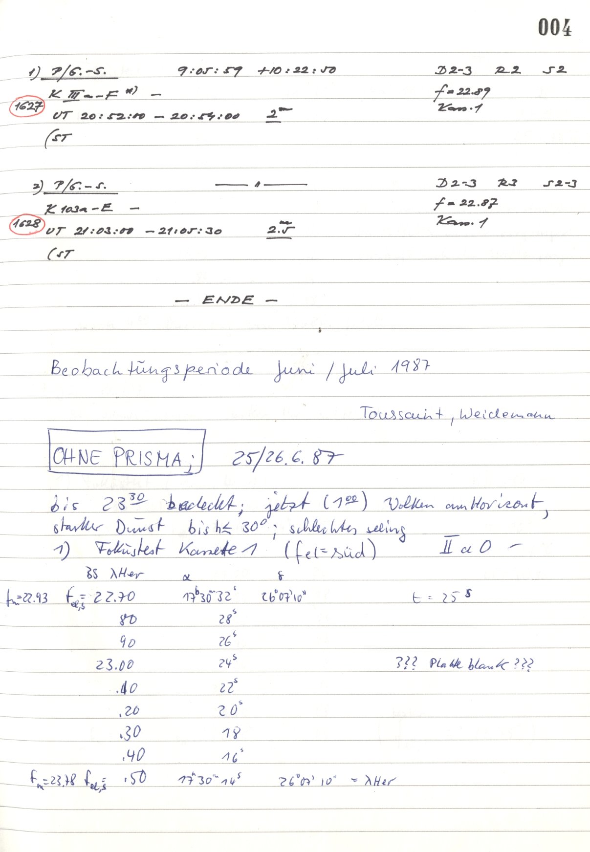 Observación y cuadernos de bitácora - Hamburger Sternwarte