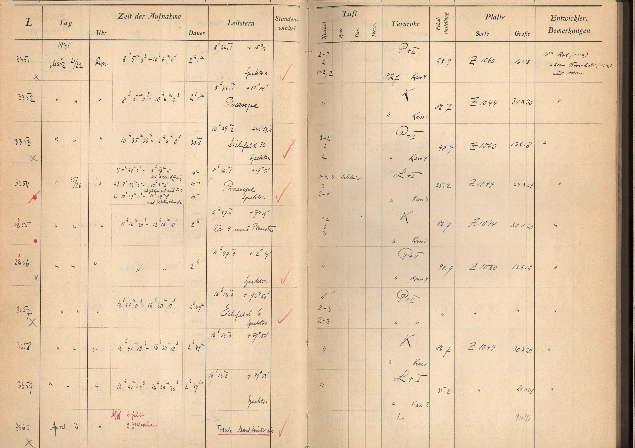 Observación y cuadernos de bitácora - Hamburger Sternwarte
