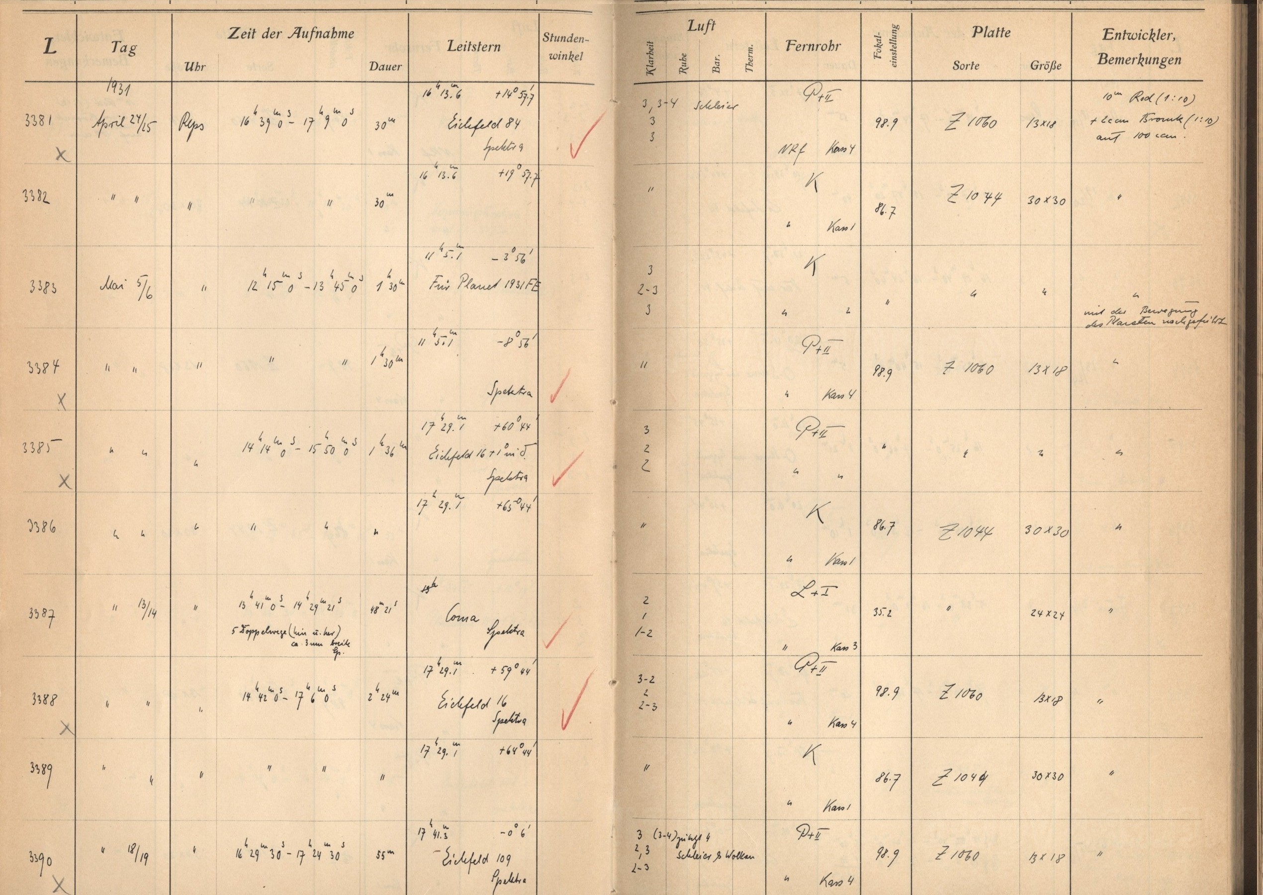 Observación y cuadernos de bitácora - Hamburger Sternwarte