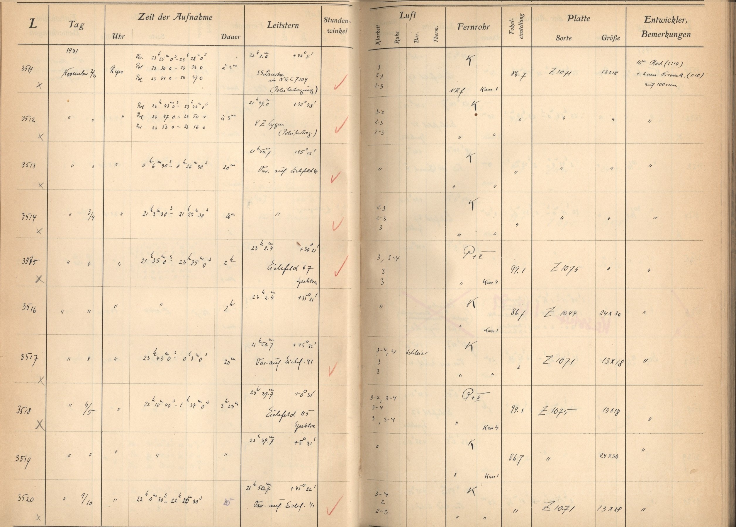 Observación y cuadernos de bitácora - Hamburger Sternwarte